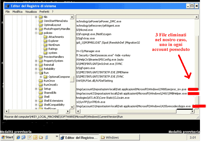 esecuzione automatica) ed eliminare il file (dovrebbe